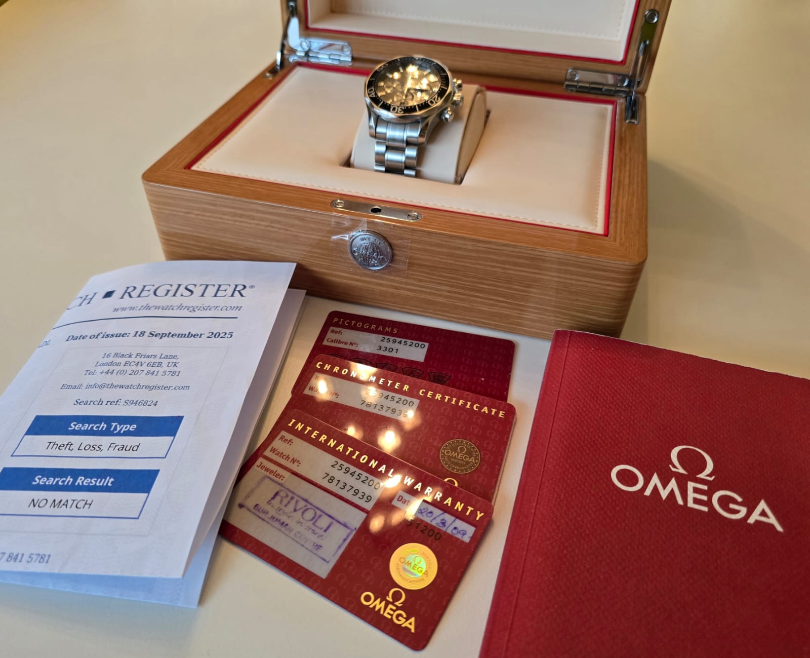 - The Watch Register certificate confirming not stolen or lost